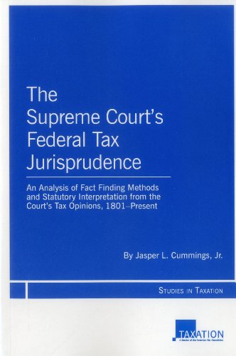 The Supreme Court's Federal Tax Jurisprudence: An Analysis of Fact Finding Methods and Statutory Interpretation from the Court's Tax Opinions, 1801-Present by Jasper L., Jr. Cummings PDF, ePub eBook D0wnl0ad